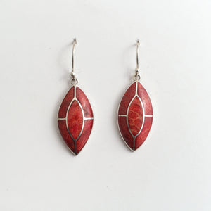 ELONGATED BAMBOO CORAL EARRINGS WIH SILVER ACCENTS
