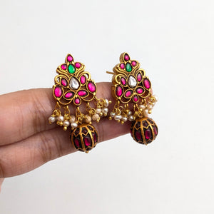 Traditional Kundan earrings with Kundan drop bead