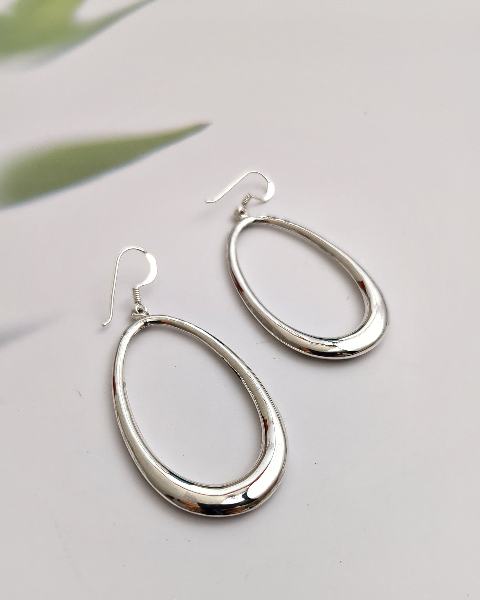 Sleek and timeless, these oval drop earrings are crafted in polished silver with a minimalist open-frame design. Perfect for everyday styling and evening elegance.