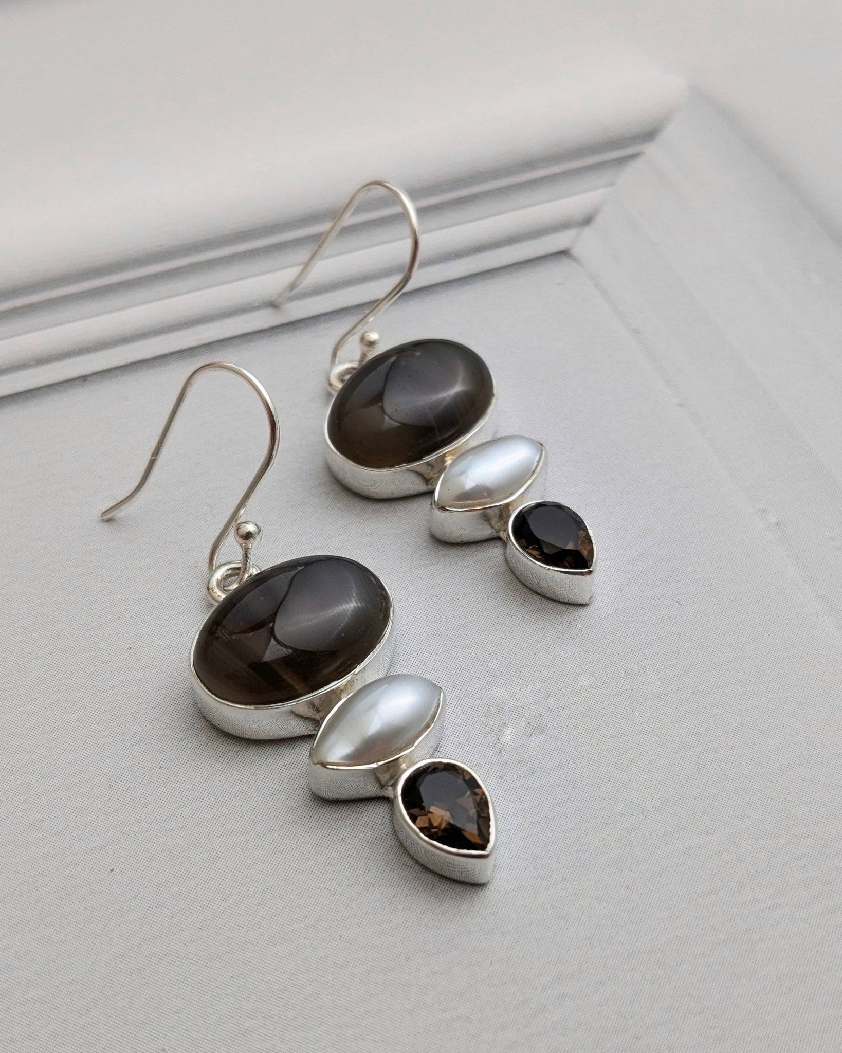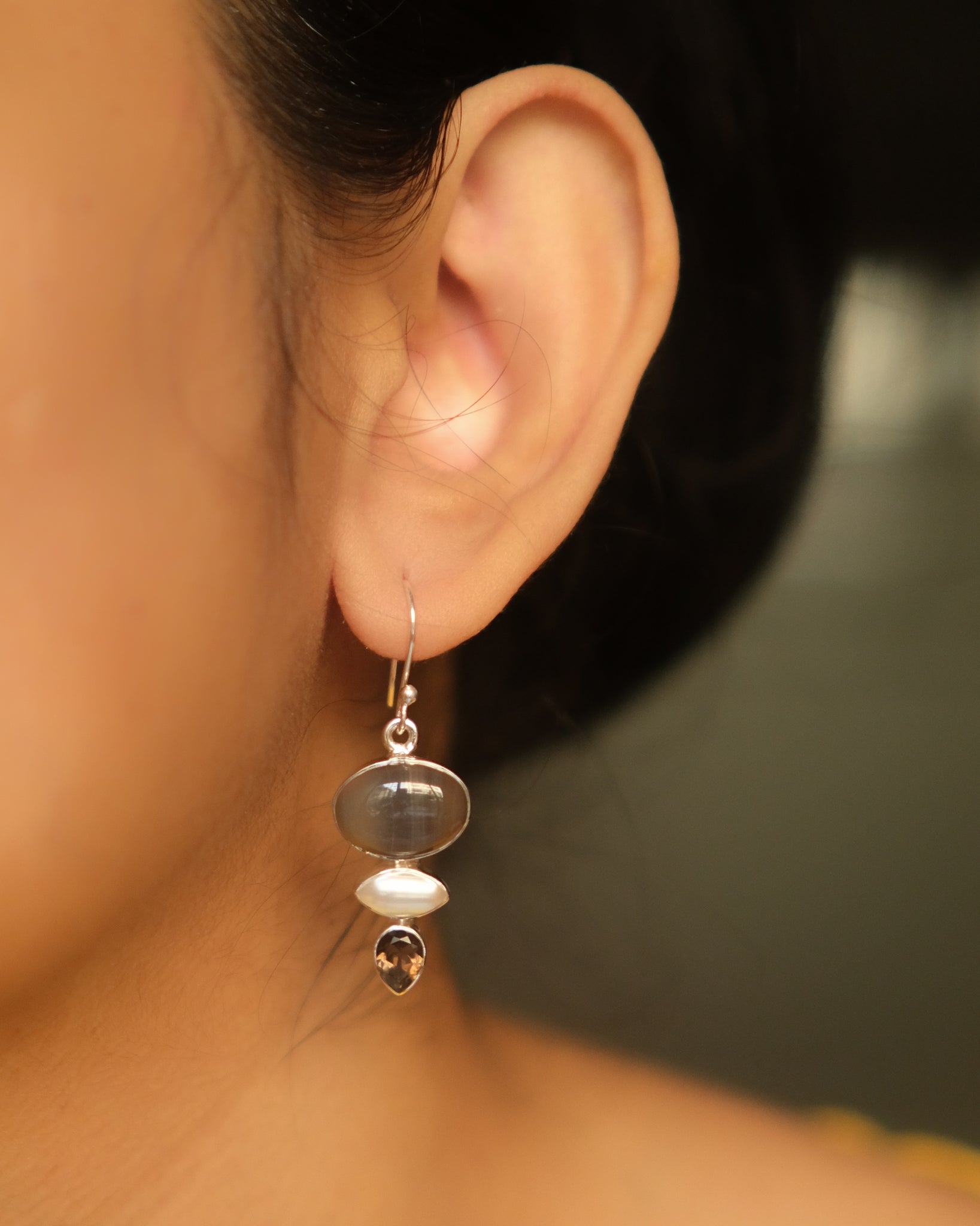 MATERIAL 925 silver set with natural pearl ,agate and smoky topaz FASTENING Simple hook LENGTH 4.5 cm WIDTH
