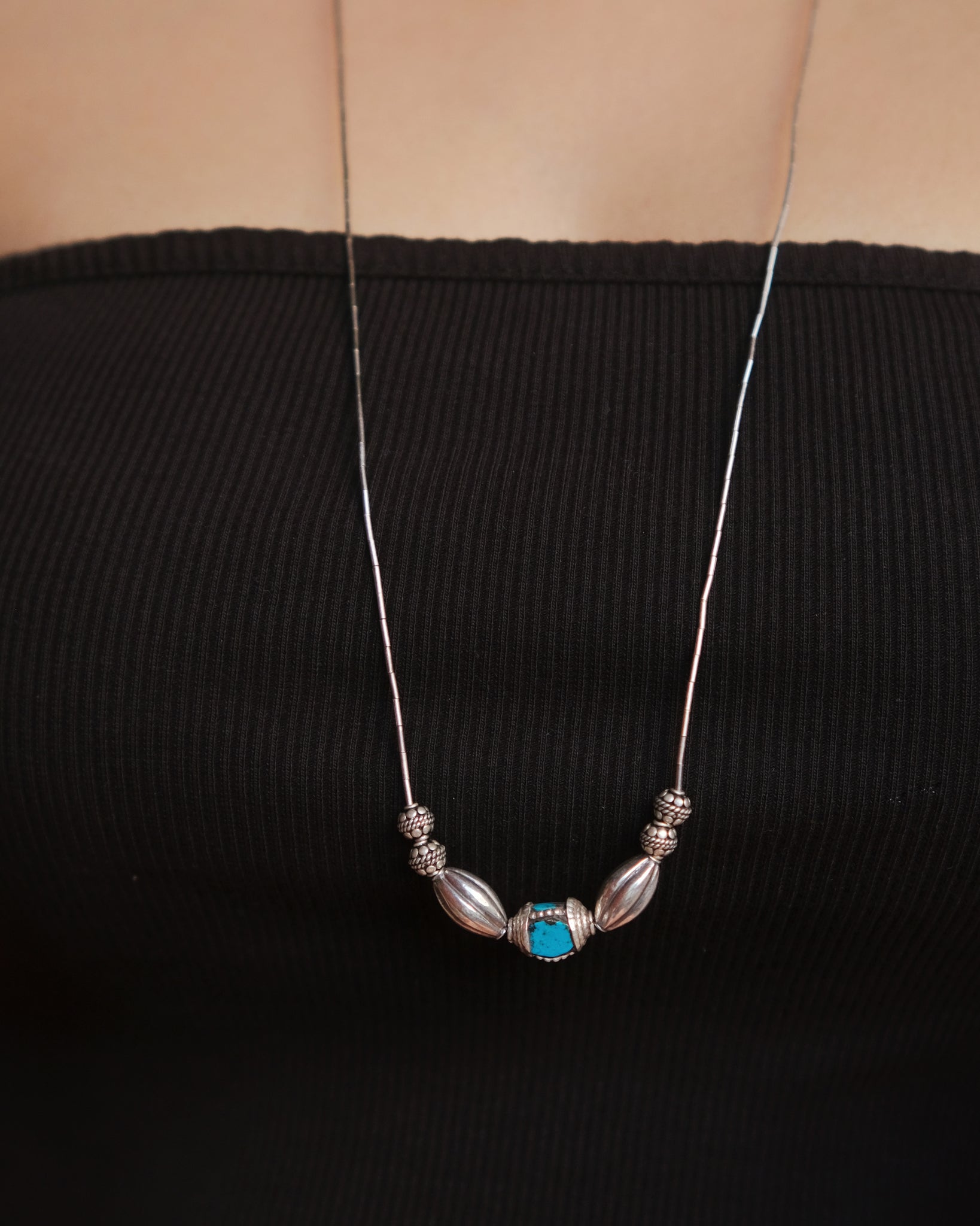 Natural turquiose and silver bead neckace
