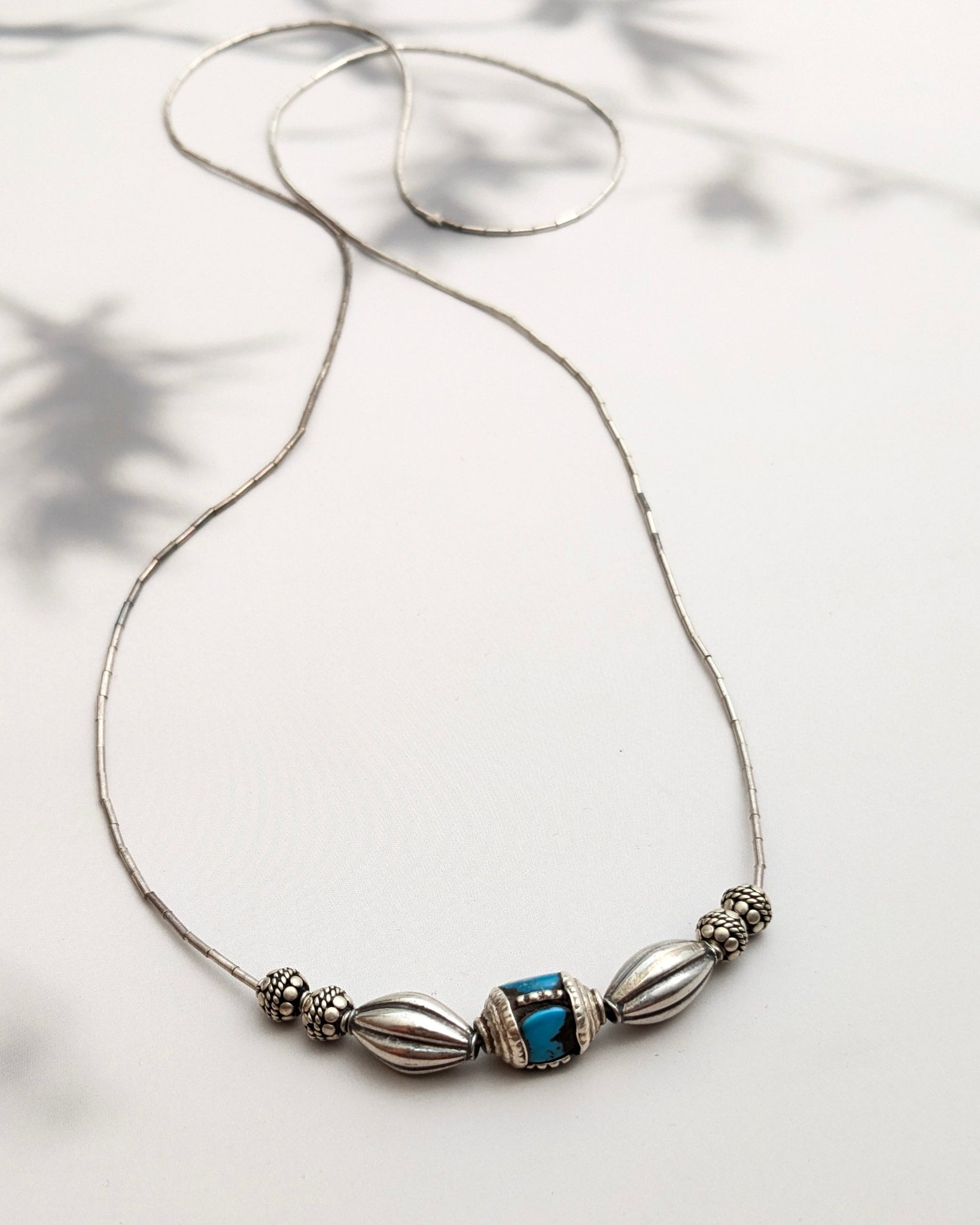 Silver and Turquiose long beaded neckace